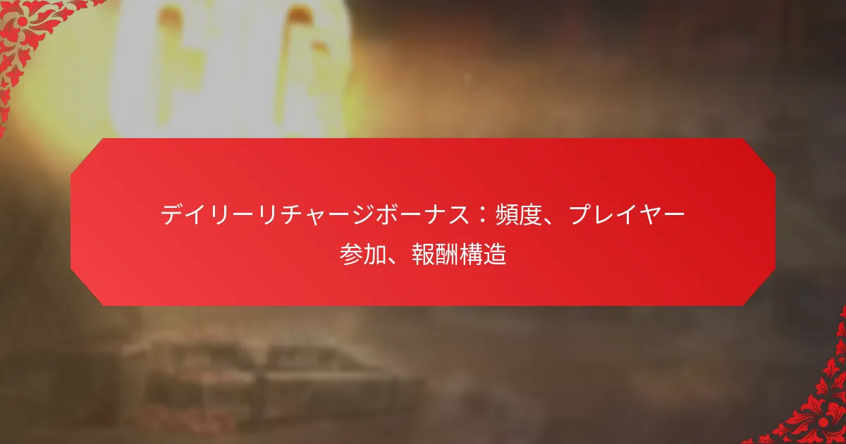 デイリーリチャージボーナスは通常、毎日利用可能で、プレイヤーがゲーム内購入に対して報酬を得る機会を提供します。これらのボーナスの頻度や構造は、ゲームごとに大きく異なり、プレイヤーのエンゲージメントや参加に影響を与えます。