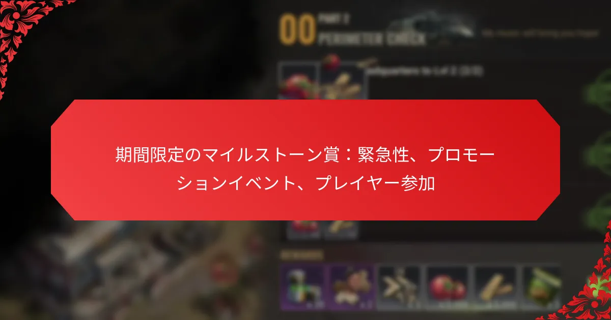 プレイヤーは、イベントに登録し、定められた時間内に特定のアクションを完了することでマイルストーン賞イベントに参加できます。これらのイベントは、参加を促し、競争を生み出すための期間限定の賞を特徴としています。
